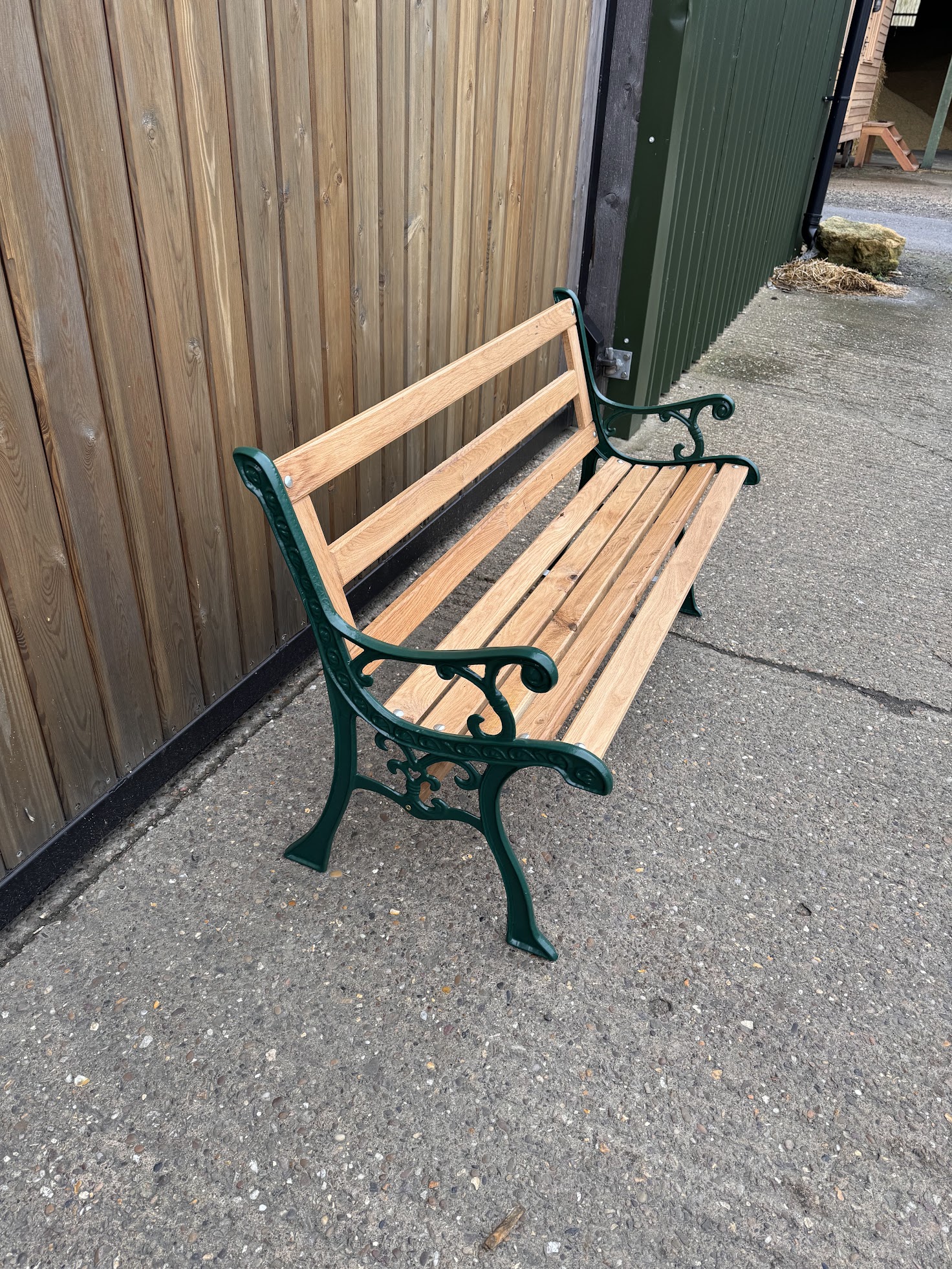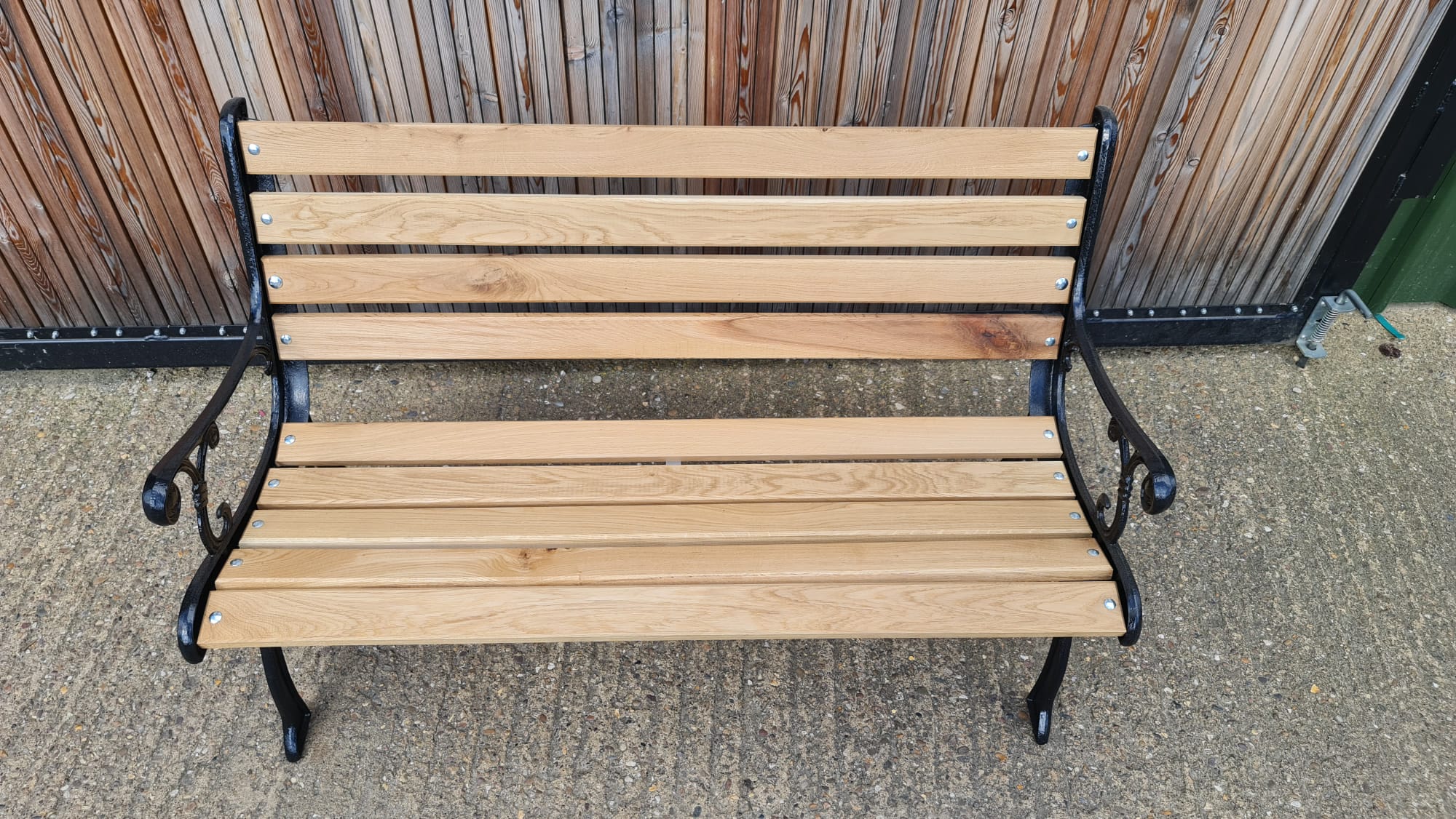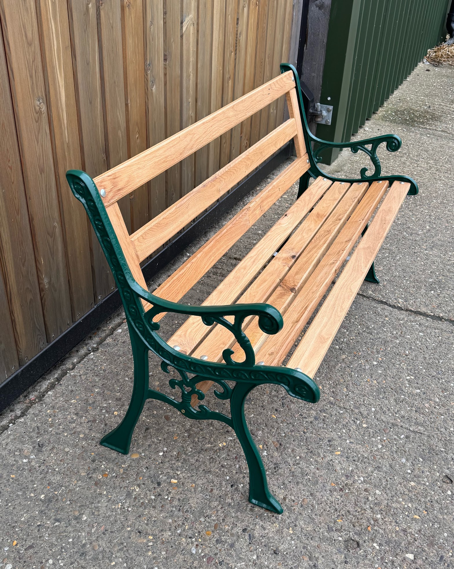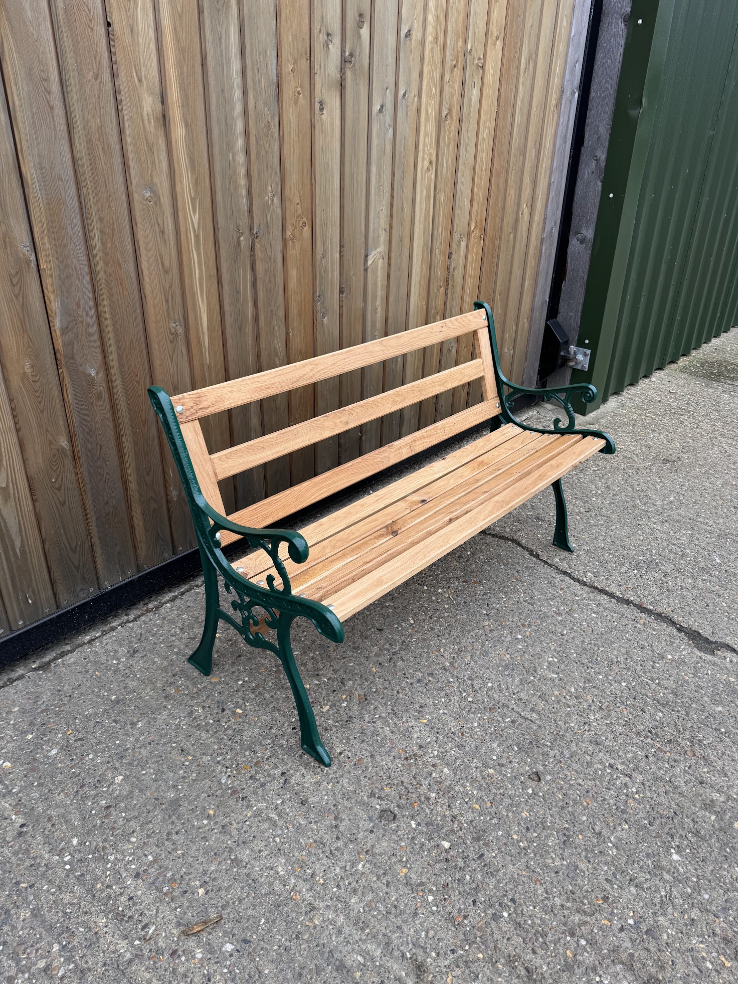 Dark Green Garden Iron Cast Oak Slatted Bench