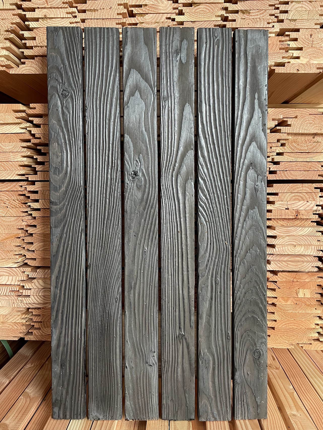 Larch Charred PAR Timber Boards 20mm | Deep Black Ideal for Board on Board cladding, fencing projects.