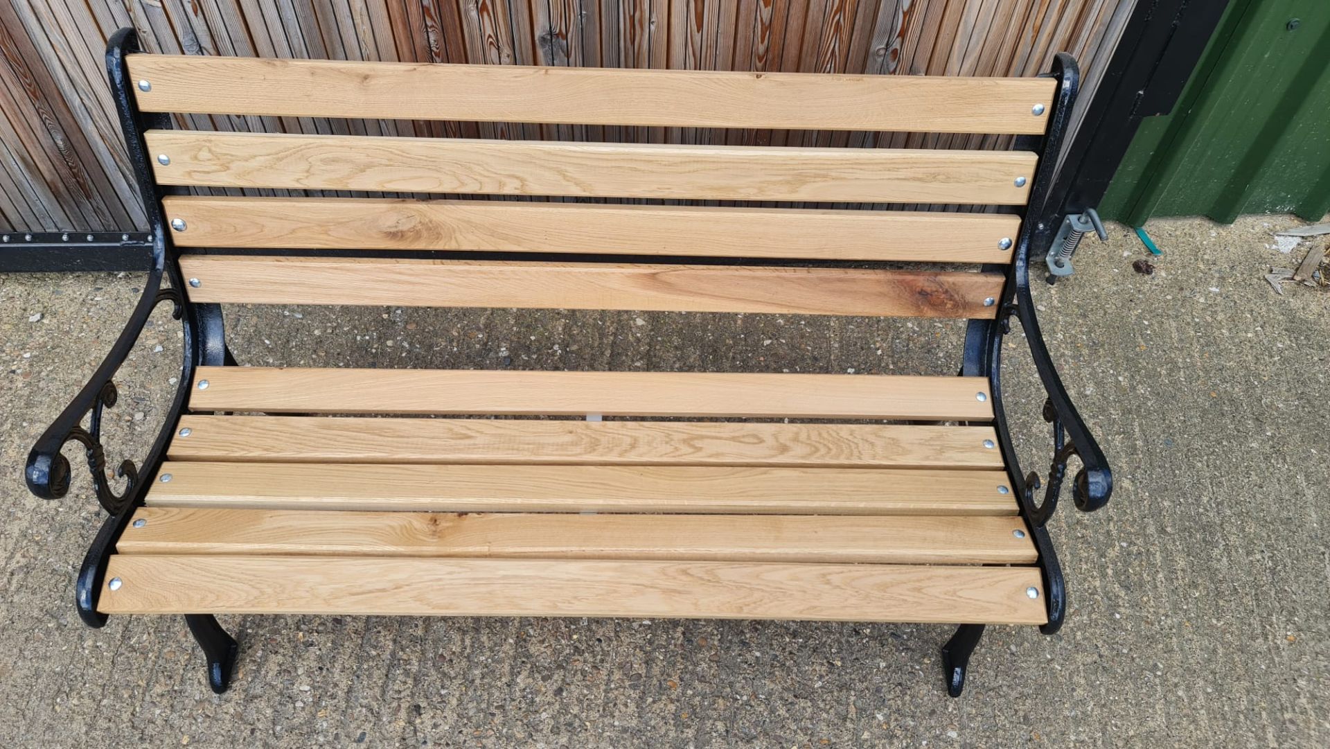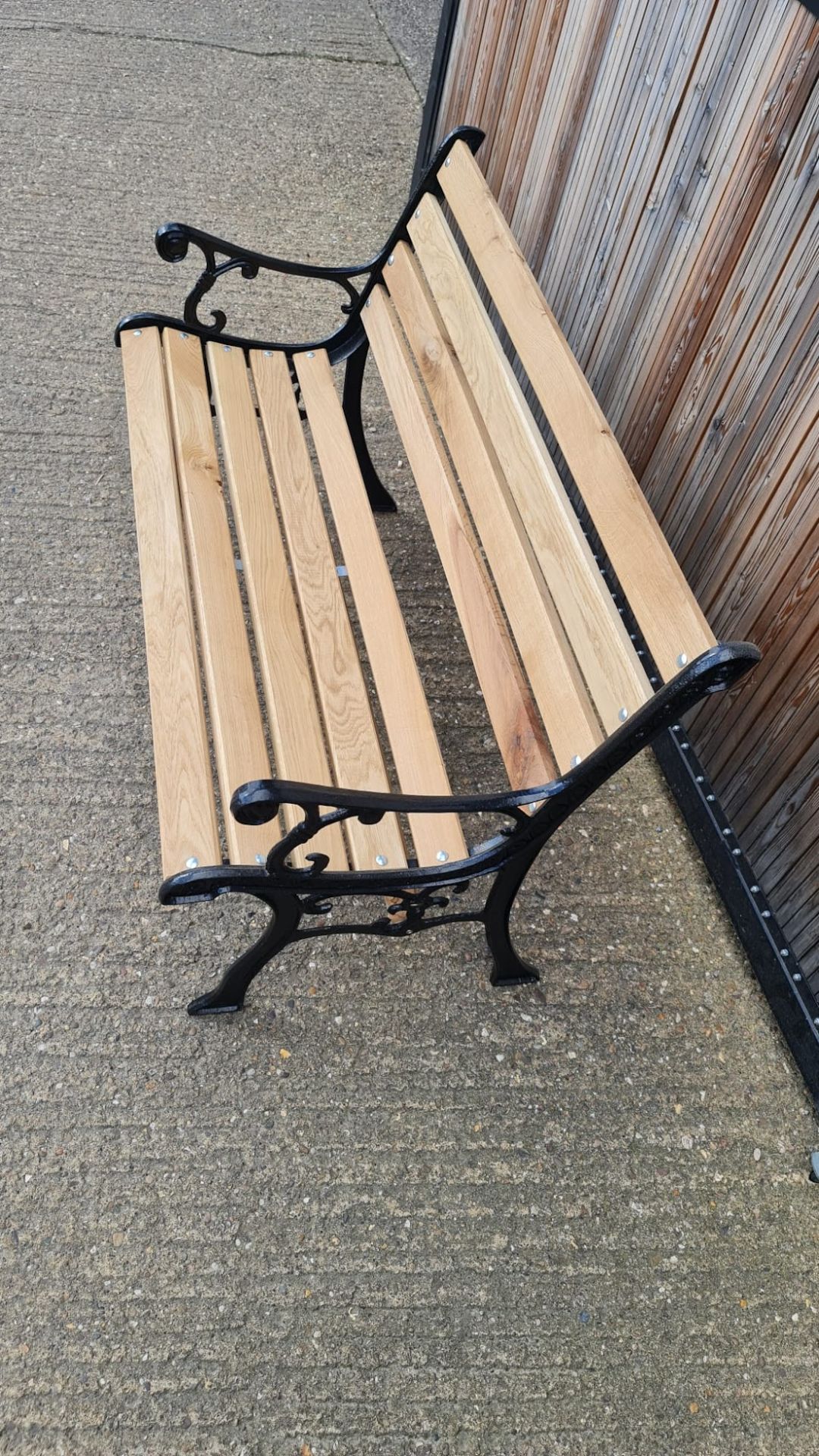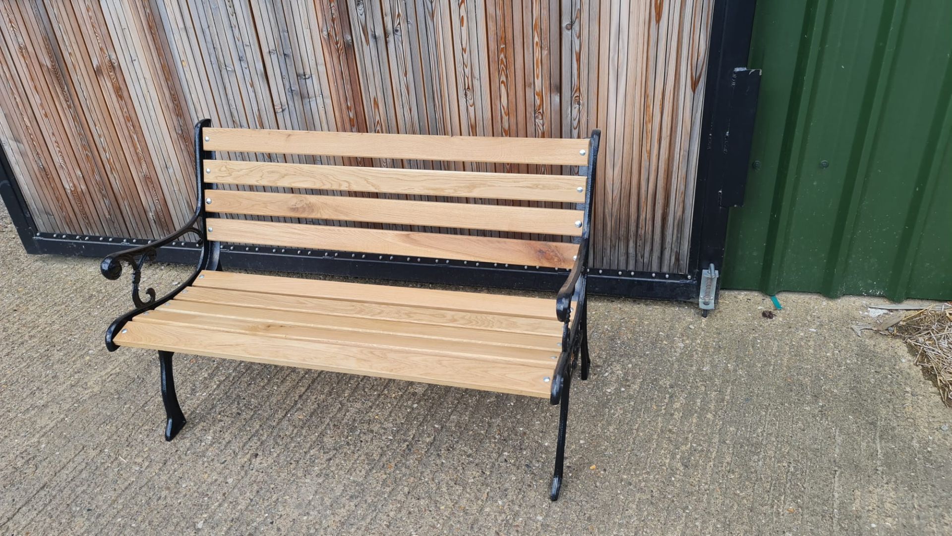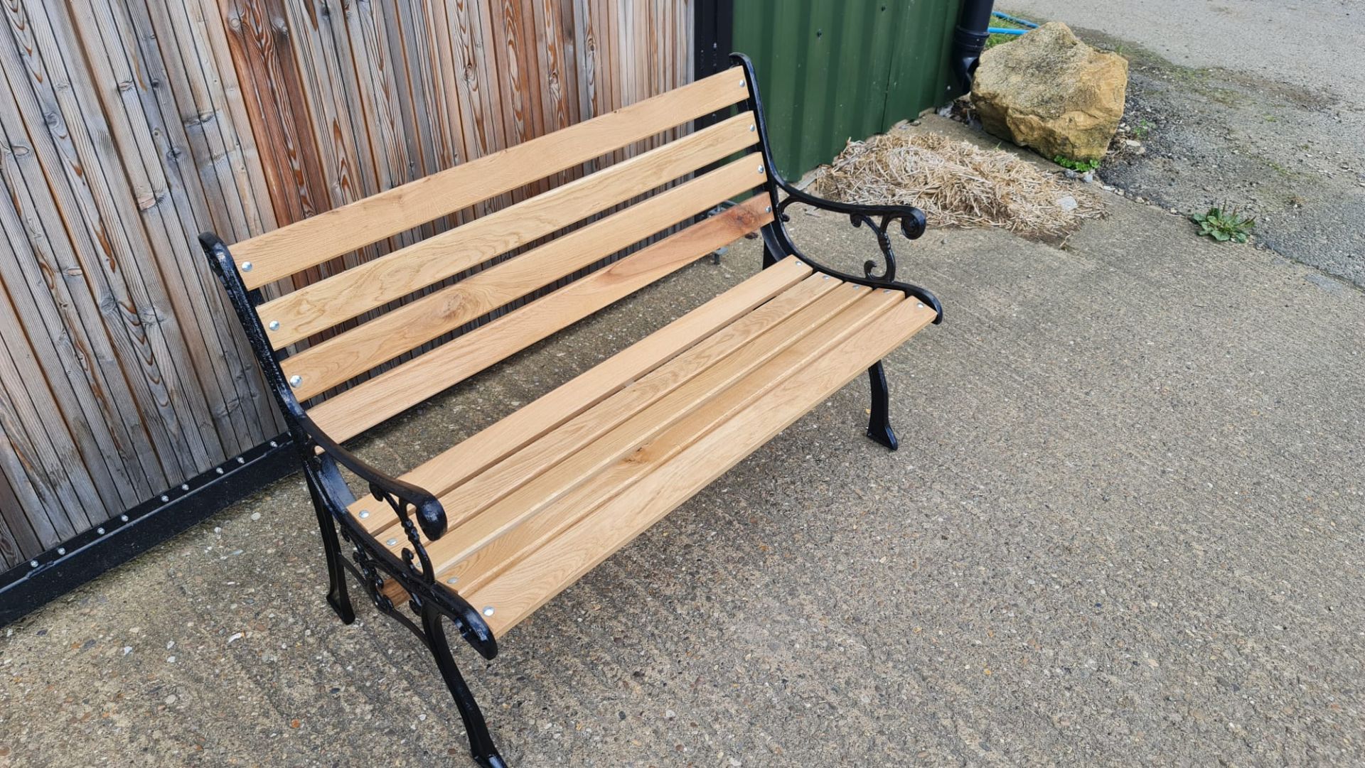 Oak Slats And Iron Cast Garden Patio Bench is perfect for garden patios, parks, or outdoor seating areas, combining functionality with a classic design that adds a charming touch to any outdoor space. The iron cast frame is low-maintenance, requiring occasional cleaning and possibly re-coating for rust protection. The oak wood may need periodic treatment with wood oil or sealant to maintain its appearance and resist weather damage.