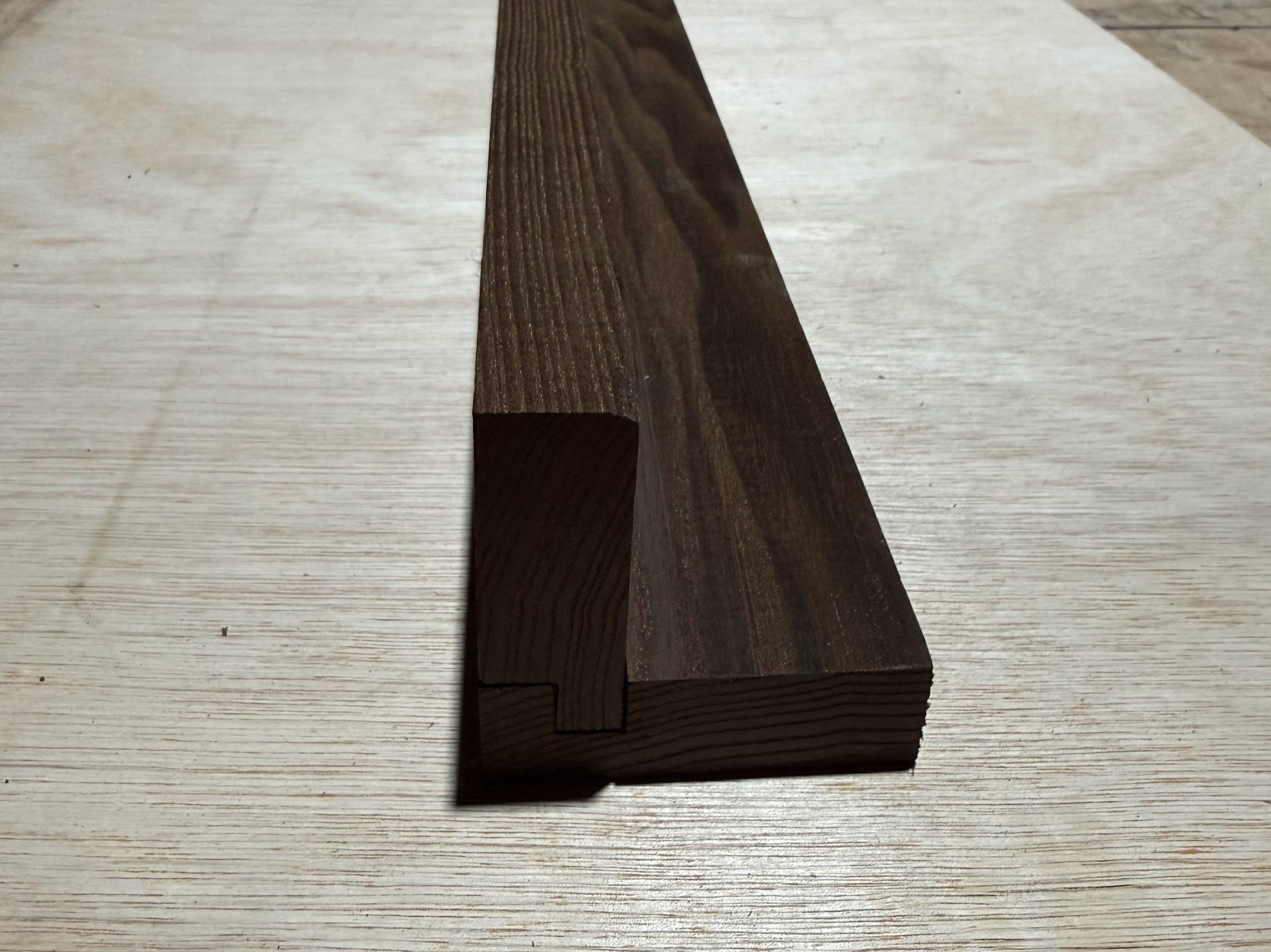Thermo Ash corner trim, Thermo Ash L shape corner, thermally modified ash cladding trim, external timber corner profile, ash cladding accessories UK.