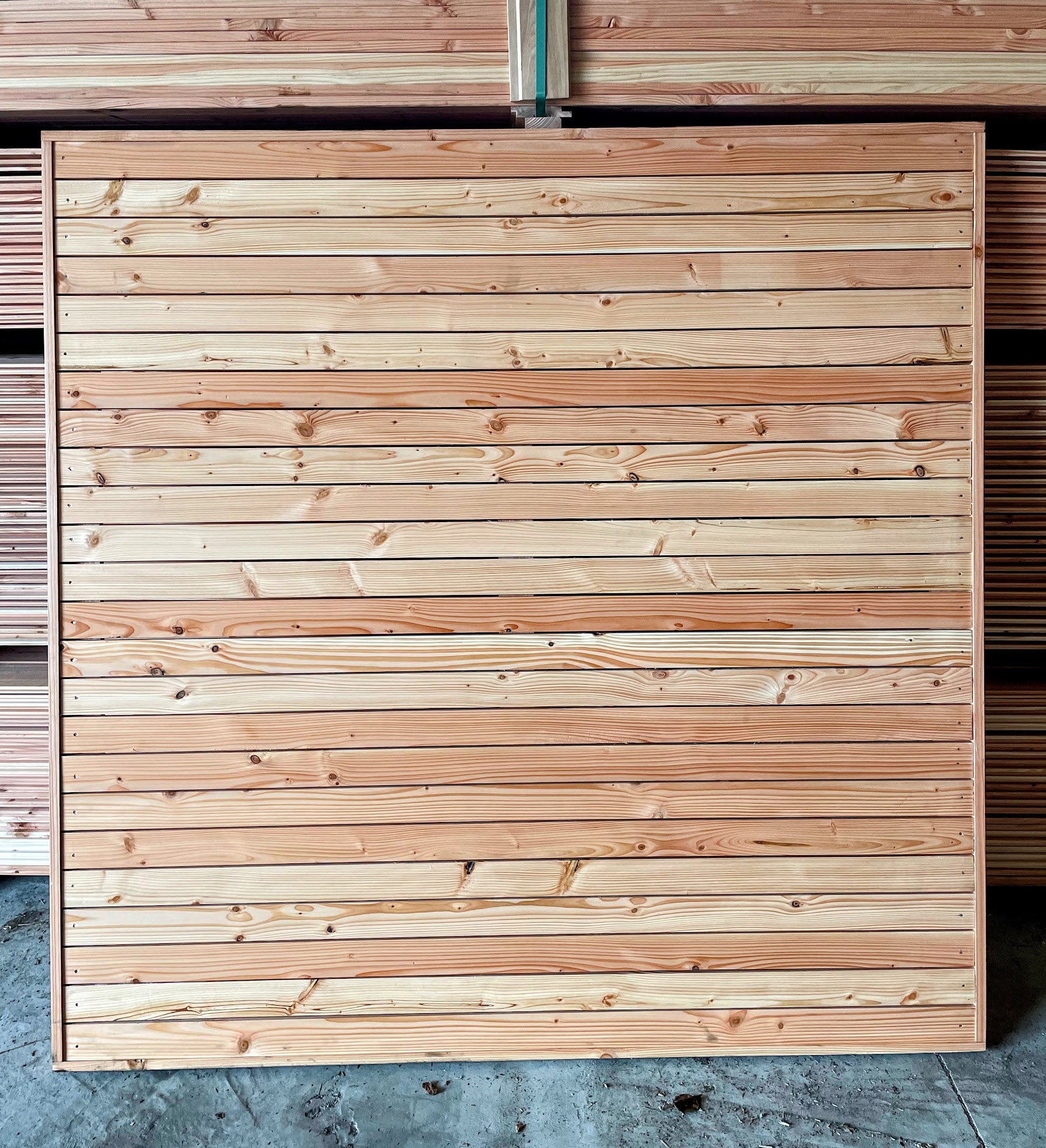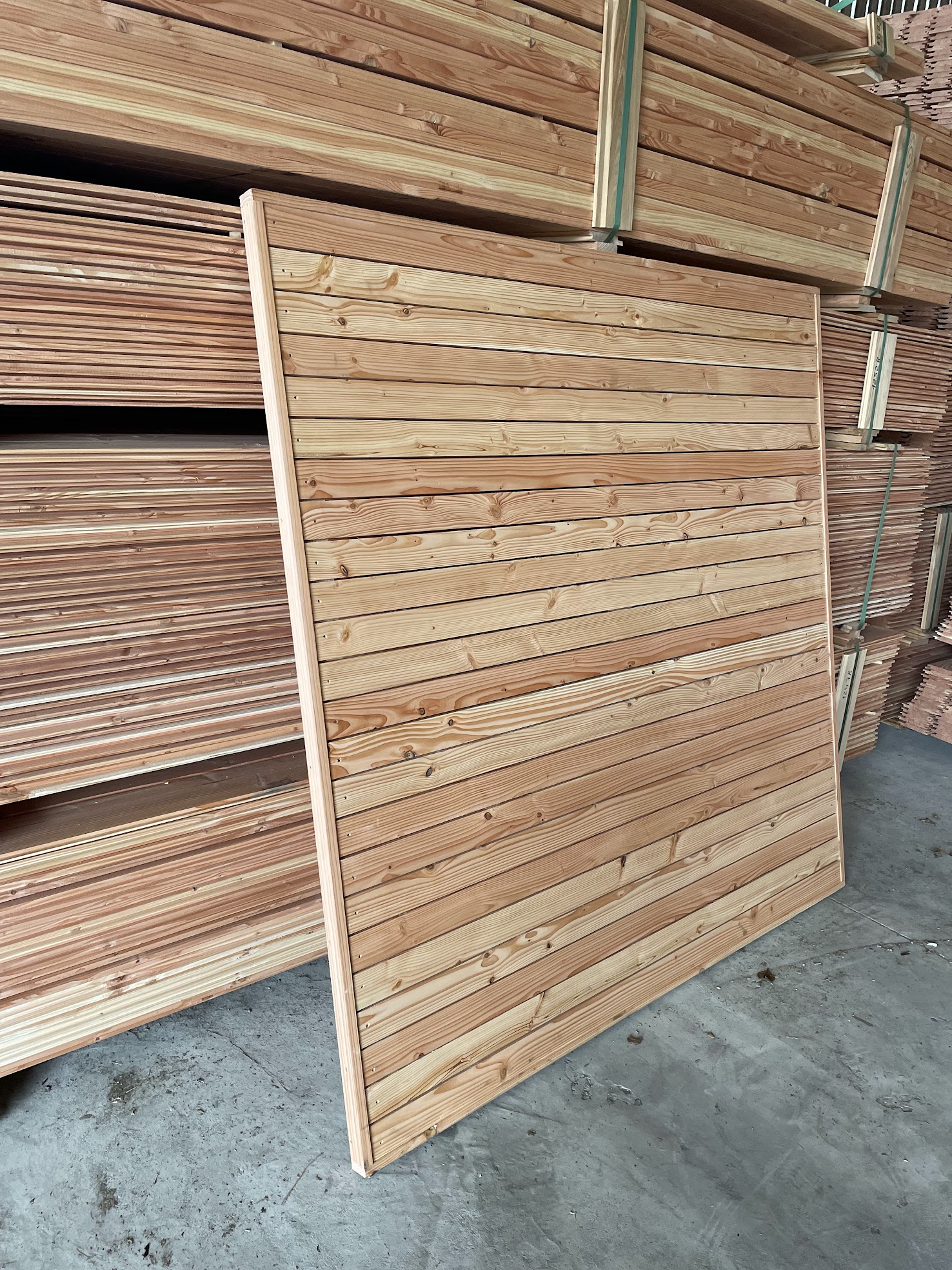 Fencing Panels made from High Quality Douglas Fir timber fencing elements slats 21mm x 70mm and Framed with battens 21x45mm.