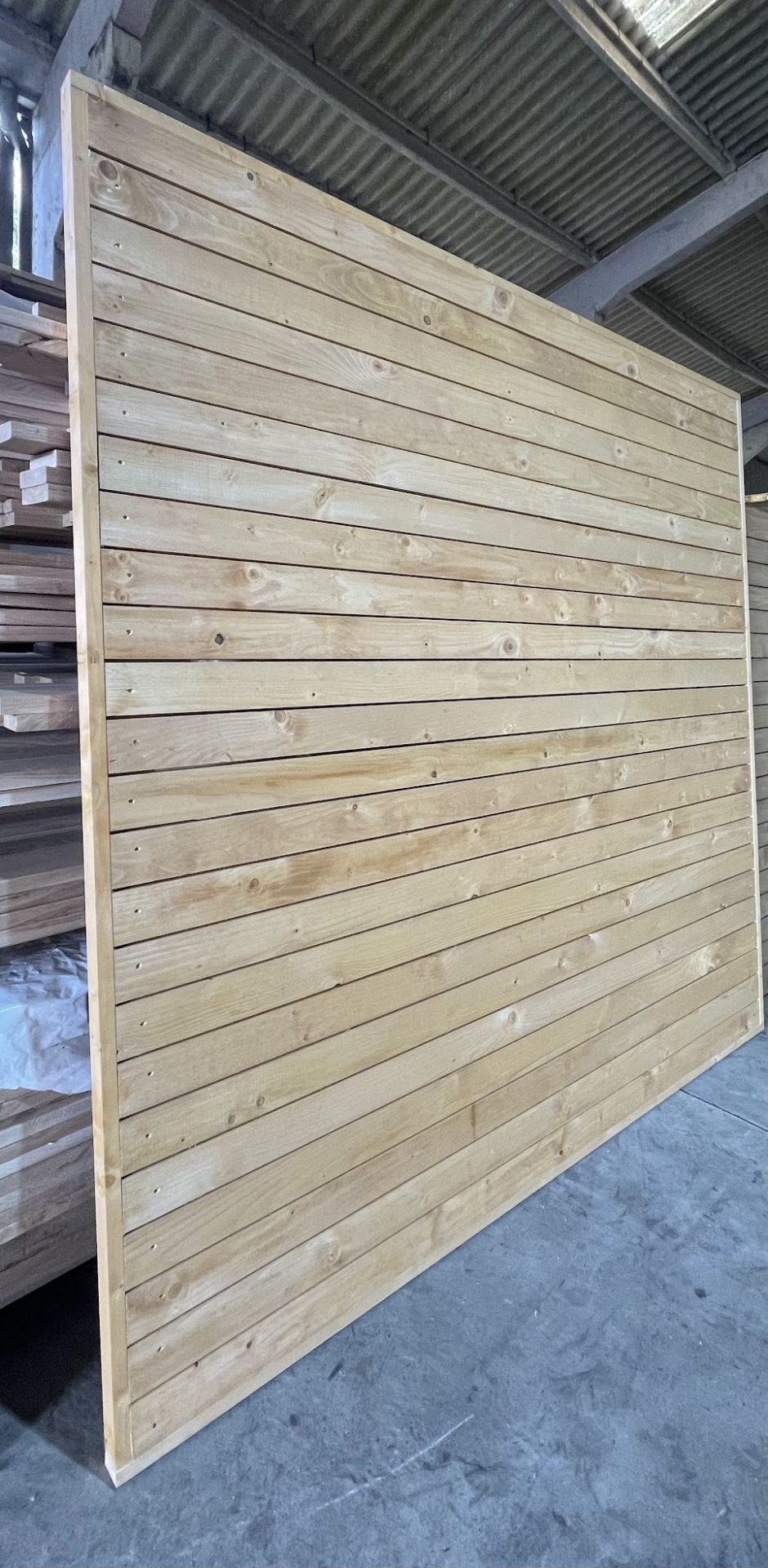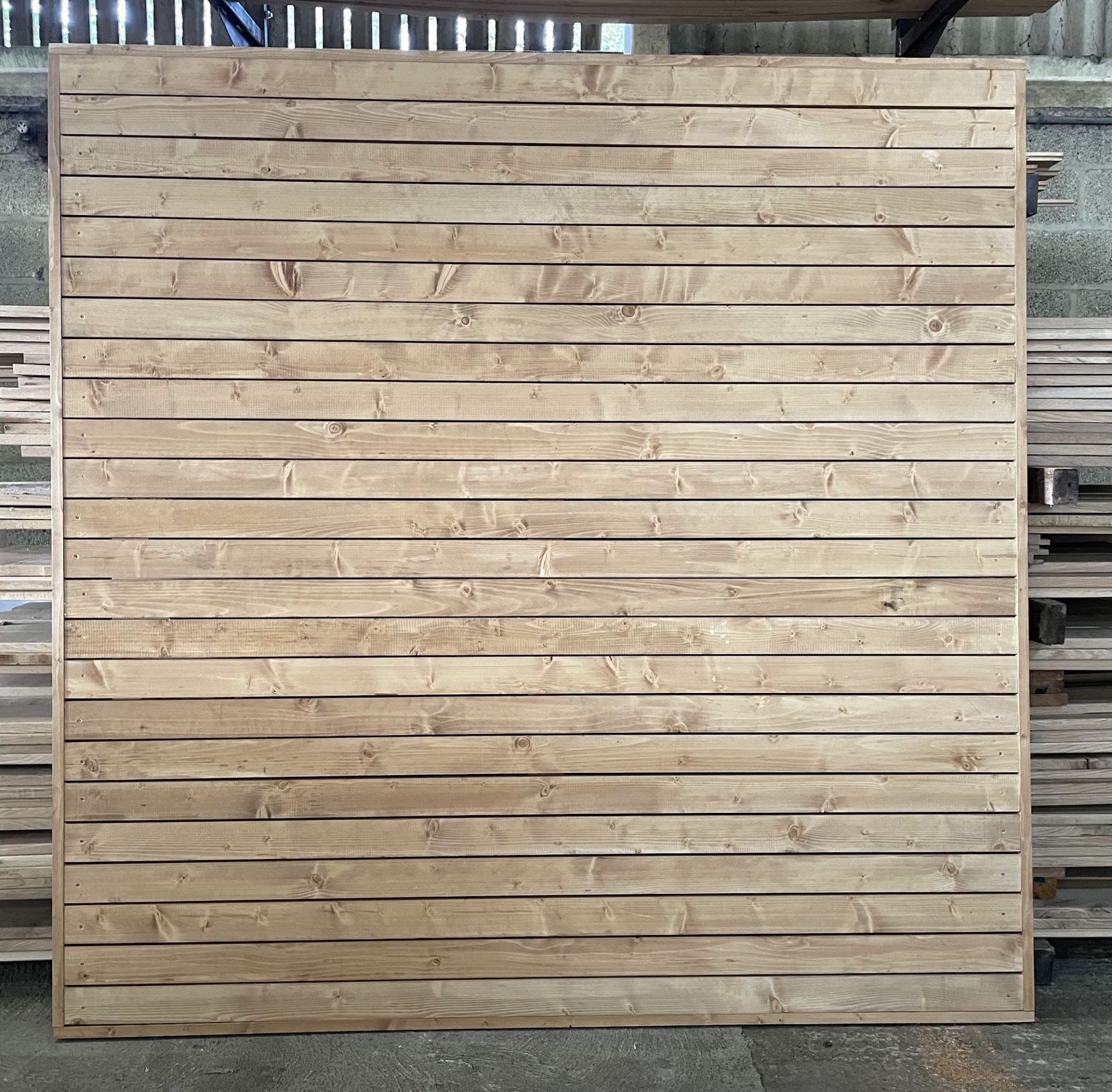 Fencing Panels made from Scandinavian Spruce Treated fencing elements square edge slats 21mm x 70mm and Framed with battens 21x45mm.